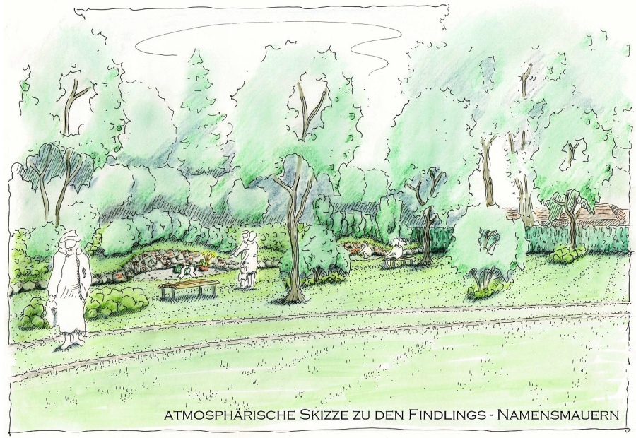 - Offene, parkartige Gestaltung, die neue Blickbeziehungen zwischen Kirchturm und älteren Friedhofsteilen ermöglicht