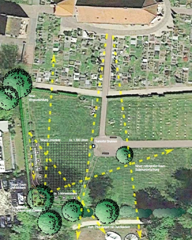 - Anlage eines Urnen-Rasenfeldes für ca. 1.400 Urnen