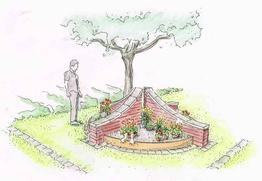 - Neue zentrale Blumenablage in gestalterischem Kontext zu vorh. Namensmauern