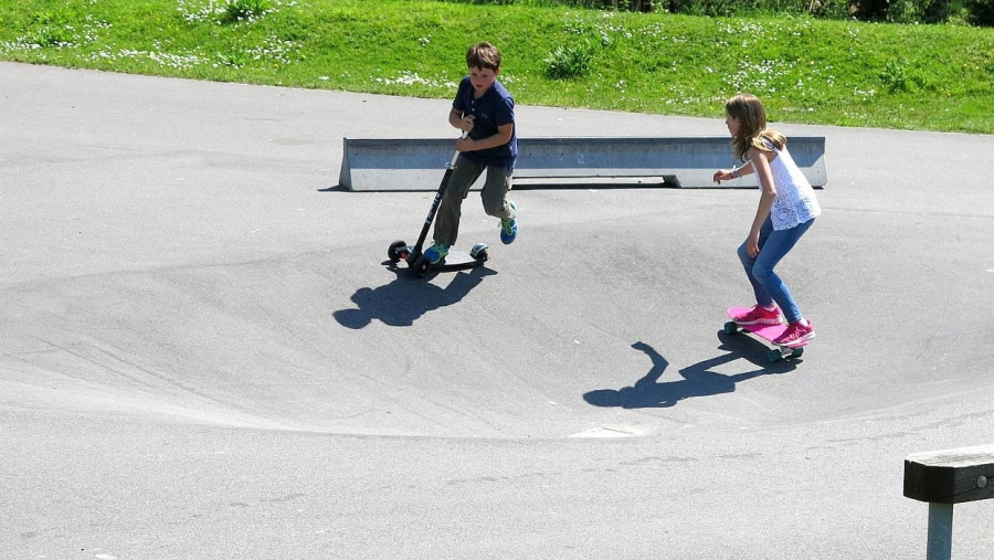 - „Bewegte“ Asphaltwege durch dünenhaftes Gelände für Inliner, Skater, Fahrräder usw. mit angeschlossener Skaterbahn