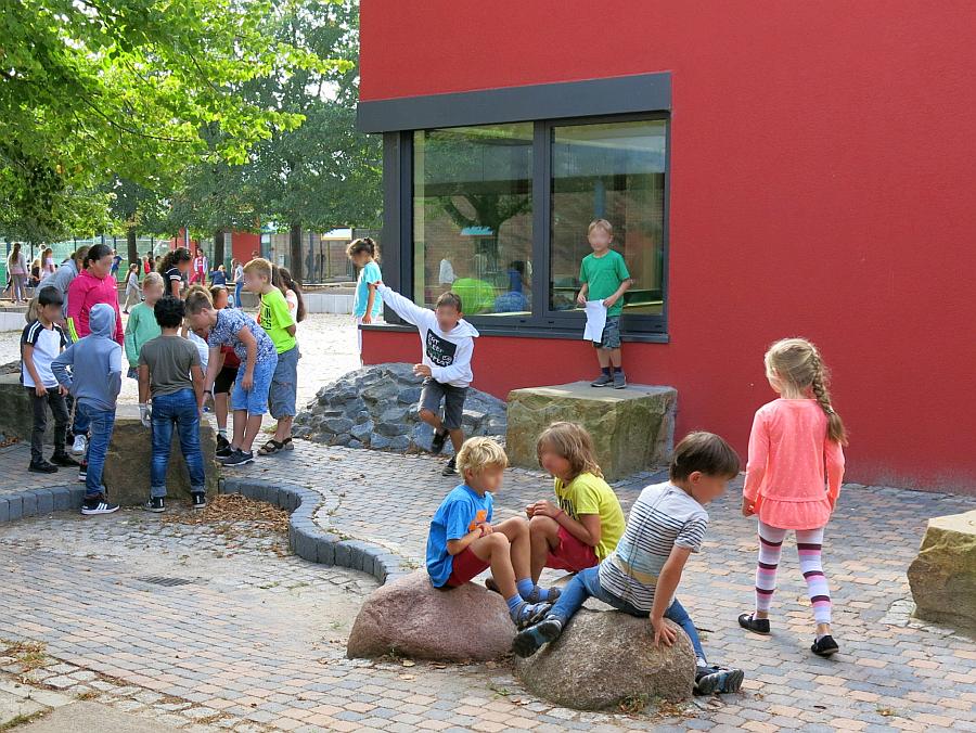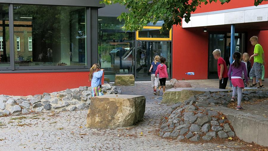 - Grundschulkindern maßstäblich angepasste, auch kleinteilige Gliederungen, Gruppentreffpunkte, vielfältige Strukturen von Enge und Weite