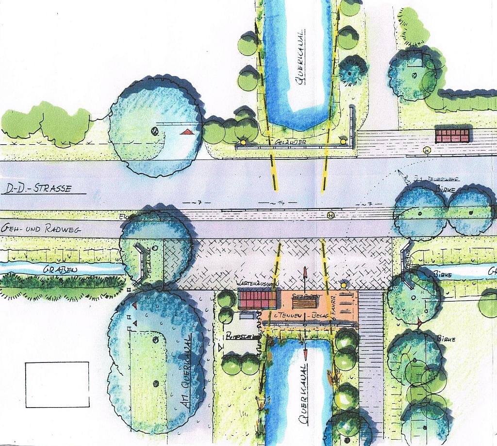 - Freistellen und wieder Sichtbarmachen des historischen Querkanals als Keimzelle des Ortes