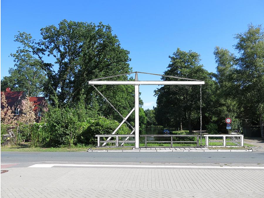 - Brückensymbol als Reminiszenz an die ehemals hier befindliche historische Fehnbrücke